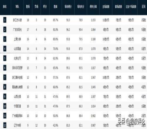 CBA积分榜最新排名出炉!广厦第1辽篮第12:山西已跌出前八