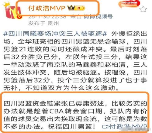 赛后,四川队仅有的两名外援也因为拖欠工资而放弃为球队出战也被推上了热搜。
