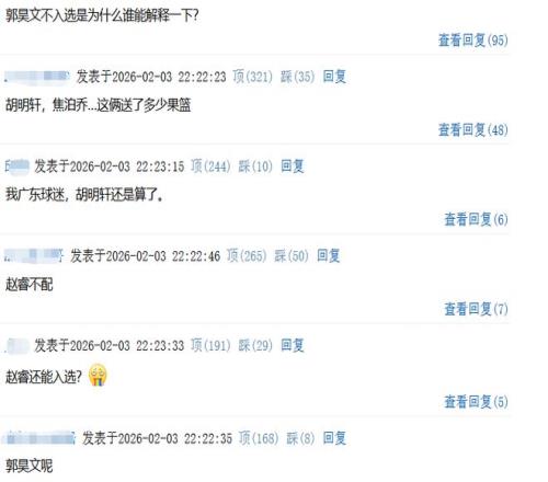 赛后球迷们评论区议论最多的话题有3个,争议最大的第一个问题,郭昊文怎么没有入选?第二个问题,赵睿怎么还能进?第三个,是周琦为何这次也落选了?
