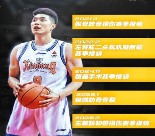 2月7日,新疆男篮官方发布重磅公告:31岁主力中锋吴冠希因左膝髌韧带损伤,将接受手术治疗,遗憾缺席本赛季剩余全部比赛。这一消息如晴天霹雳,击碎了新疆球迷的赛季希望,也再次将这位CBA最坚韧的内线战士,推入伤病的深渊。