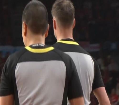 即便是末节保持大比分领先,可惜裁判还是在尽可能制造悬念。一些五五开的球,要不就是对手假摔,裁判基本上都吹罚我们犯规。并且只要手上有动作,也是我们犯规,这样的吹罚就很莫名其妙,估计也是历史罕见了。