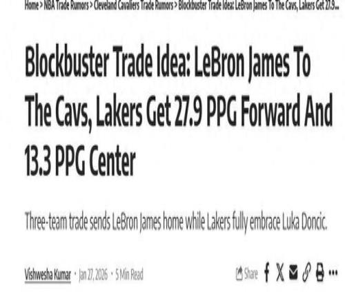 当NBA的交易流言季节遇上勒布朗·詹姆斯的未来悬念,篮球世界便燃起了一场前所未有的想象力盛宴。北京时间1月28日,名记Shams一则“詹姆斯湖人生涯接近结束”的报道,如同投入平静湖面的巨石,激起了千层浪花。紧随其后,知名美媒Bleacher Report抛出了一套足以重塑联盟格局的三方交易方案——詹姆斯携子布朗尼重返克利夫兰,湖人则迎来马尔卡宁与贾勒特·阿伦两位全明星内线。勒布朗·詹姆斯与克利夫兰骑士之间,似乎正等待着那震撼人心的第三篇章。