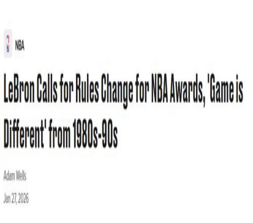 北京时间1月28日,詹姆斯在最新一期的播客中提到了联盟的65场评奖规则,他公开呼吁联盟废除这一规则。赛季至今,詹姆斯已经缺阵17场比赛,再休战一场就将无缘评奖。随着2025-26赛季NBA最有价值球员的争夺逐渐白热化,而众多往年的热门人选却因参赛场次不足,将大概率无缘各类奖项评选。