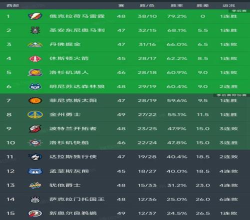 随着马刺11199火箭,湖人惨败30分,NBA最新积分榜如下!勇士第8