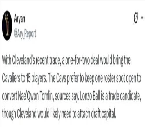 根据美记Aryan的说法,因为交易达成后骑士就是15人大名单,骑士倾向于将内匡的双向合同转正所以球队还需要腾出一个空位,朗佐鲍尔就是交易对象之一,不过骑士要送走他可能要送出选秀权。