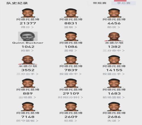 整个雄鹿生涯,字母哥打了889场常规赛,场均得到24分9.9篮板5助攻1.1抢断1.2盖帽3失误,三项命中率:55.4%,28.6%,69.2%。字母哥的总出场数、得分、篮板、助攻、盖帽、投篮出手和命中数等数据,均是雄鹿队史第一。