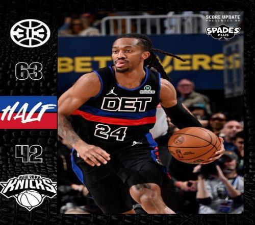 次节比赛,双方进攻火力均升级,尼克斯更是首次单节得分35+。活塞持续进攻压制扩大40-25领先优势,并在之后扩大47-30领先优势,尼克斯反扑追到差14分。活塞连得4分巩固优势,尼克斯连追4分,活塞一波7-0攻势扩大60-39领先优势。双方继续各得3分,尼克斯单节35-25净胜10分,上半场结束活塞扩大63-42领先尼克斯21分优势。前两节比赛,尼克斯三分19中5,布伦森13中2得到5+3+4与布里奇斯3记三分15分;活塞三分18中10,坎宁安11+4+3与詹金斯11分。