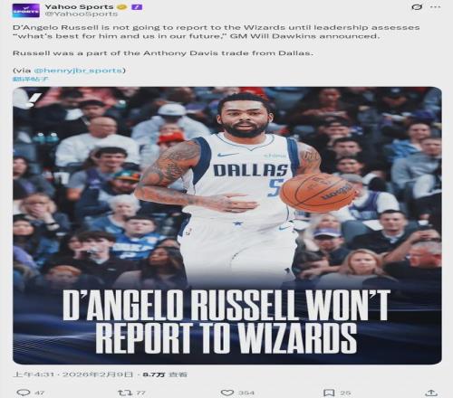 今年2月5日,奇才送出米德尔顿、AJ-约翰逊、巴格利、布兰纳姆、2个首轮、3个次轮,9换4从独行侠交易得到浓眉、拉塞尔、哈迪、埃克萨姆。当时美国媒体调侃:无论浓眉去哪里(湖人、独行侠、奇才),都无法摆脱拉塞尔。