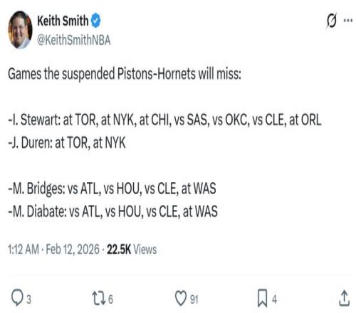 针对黄蜂与活塞的超大规模冲突,NBA官方火速理清事件脉络,公布对于4名参与冲突球员的具体处罚,合计禁赛17场比赛。