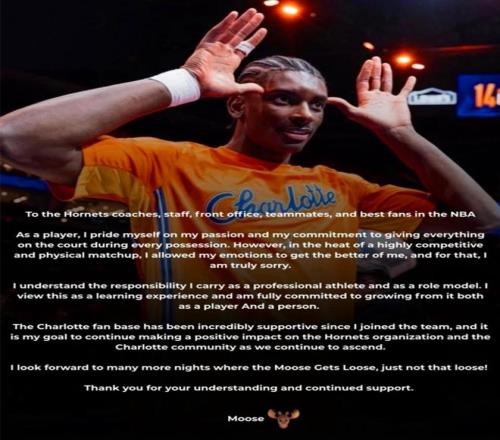 迪亚巴特更是发布长文向教练组、工作人员、管理层、队友以及NBA球迷进行了道歉,保证自己不会再如此失控。