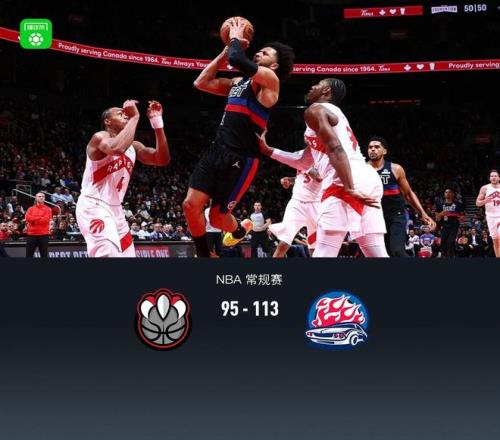 第四节猛龙英格拉姆拿下5分,活塞赫尔特拿下7分,最终猛龙95-113不敌活塞