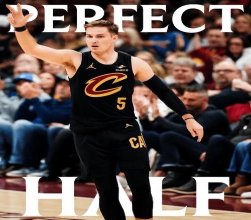 骑士队这边,梅里尔出战13分钟9次出手全中,其中三分球7投7中,罚球1投1中,狂轰26分2篮板,得分和三分命中数均刷新生涯半场新高;阿伦6中6轰下14分5篮板2助攻;哈登3中1、罚球10中8得到11分3篮板8助攻;米切尔7中4也得到11分1篮板4助攻2抢断。