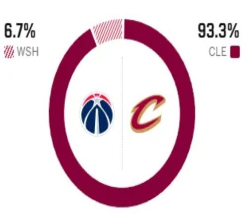 赛前,美媒ESPN对本场比赛进行了预测,奇才胜率仅有可怜的6.7%,骑士胜率高达93.3% ,断崖式领先。