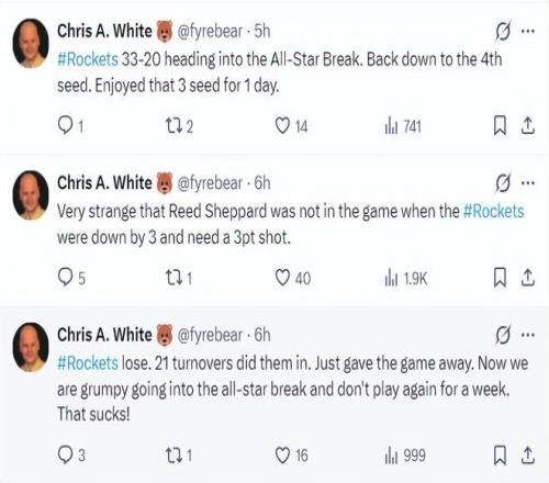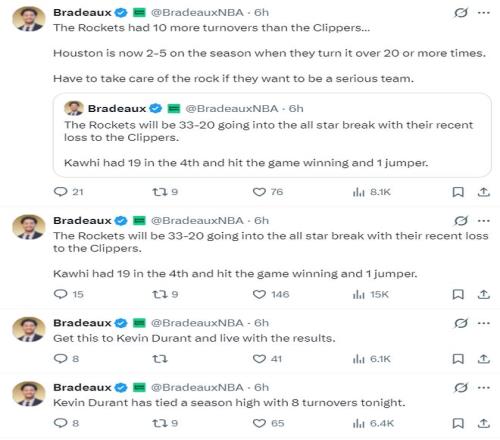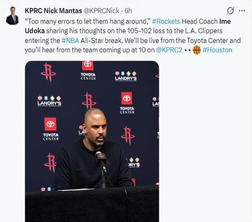 火箭队在进入全明星周末前战绩33胜20负,而且在球队需要一个三分球时乌度卡不让谢泼德在场,火箭单场21次失误也太糟糕了。杜兰特也未能出手火箭的绝平一球。