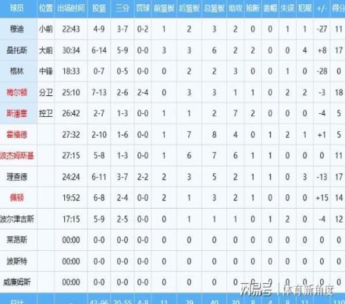 凯尔特人队这边,球员表现参差不齐。追梦格林的表现着实令人大跌眼镜,他的运动战7次出手全部偏出,并且没有获得任何罚球机会,得分栏上零分,仅仅收获了2个篮板和3次助攻。更糟糕的是,他的正负值低至 -28,位列全场最低。交易截止日已然过去,格林却依旧状态低迷,不禁让人心生疑问:是他没有全身心投入比赛,还是年满35岁的他,竞技水平出现了断崖式下滑?