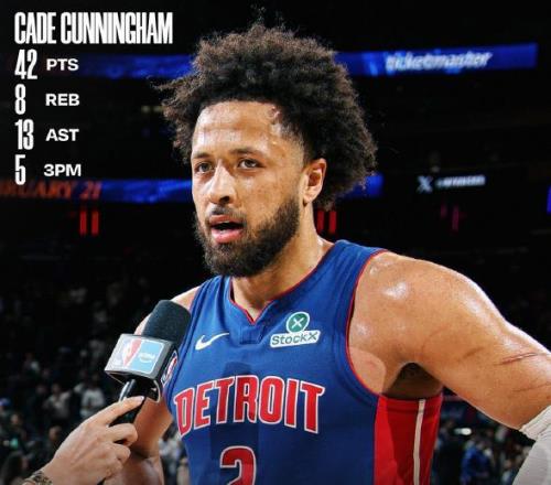 活塞和雷霆一样,都是靠着年轻球员崛起成为联盟强队,目前坎宁安这个24岁小将已经成为活塞头号球星,场均25.7分非常闪耀,他是球队进攻端不可或缺的大杀器,本场比赛他狂砍42分,证明他的价值和潜力。