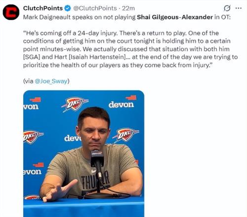 SGA和哈滕没有在加时赛出场切特表示我们确实积累了更多的实战经验_NBA直播