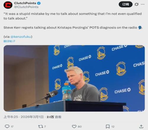 勇士主帅科尔在一档电台节目中回应:自己跟老鹰总经理Onsi Saleh通过电话。Onsi Saleh告诉科尔,波尔津吉斯身患的并非POTS,那是外界的错误信息,波尔津吉斯确诊的是其他怪病。Onsi Saleh曾是勇士副总裁,跟科尔关系密切。