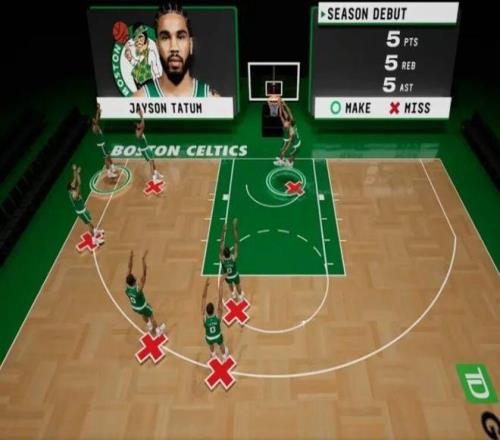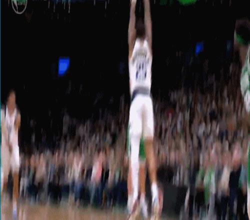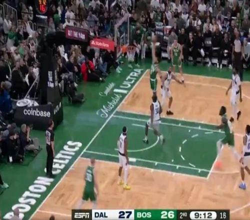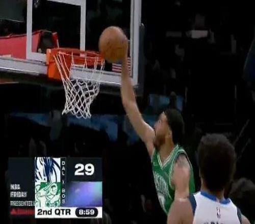 塔图姆确实还有顾虑,不敢完全发力,一个中路突破长驱篮下,起飞单臂暴扣,结果扣飞了……
