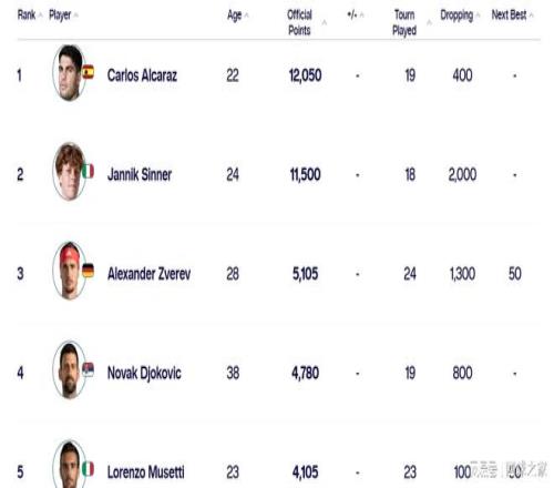 也就是说,领跑网坛的辛卡二人与其他球员之间,已经出现了明显的断层。其他球员并非在贴身追赶辛卡二人,而是被拉开了明显的差距。