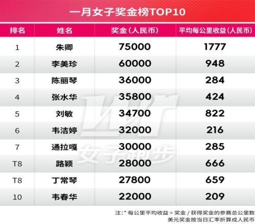今年一月马拉松国内总奖金超190W,朱卿丰配友领衔月度奖金榜