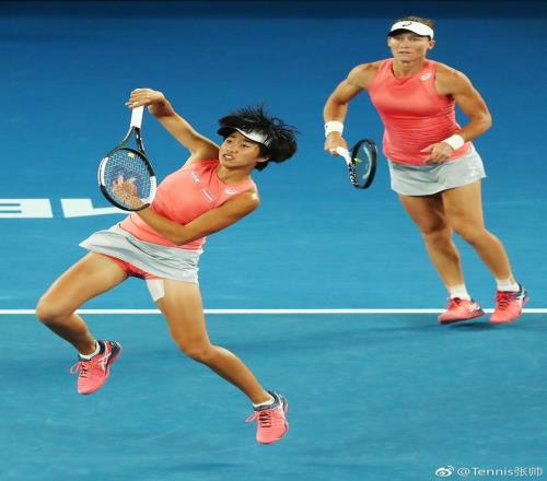 1月31日举行的2026年澳大利亚网球公开赛女双决赛上,中国选手张帅搭档比利时选手梅尔滕斯,以7比6、6比4战胜达尼丽娜(哈萨克斯坦)/克鲁尼奇(塞尔维亚),夺得冠军。