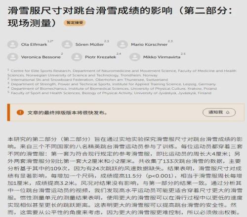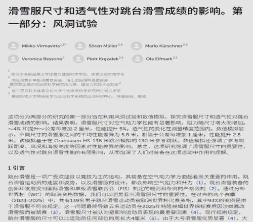 权威期刊《前沿》在2025年10月30日发表了一项研究:滑雪服公差每增加1厘米,在空中产生的升力,就足以让成绩提升2.8米,那么不同型号的滑雪服之间,平均飞行距离差异可以达到5.8米。