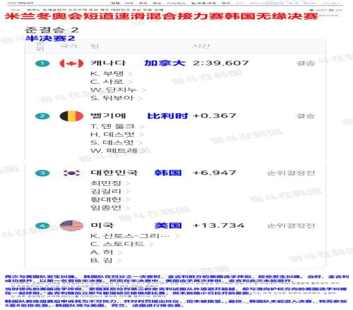 韩国网友热议米兰冬奥会短道速滑混合接力韩国队因美国队摔倒无缘决赛
