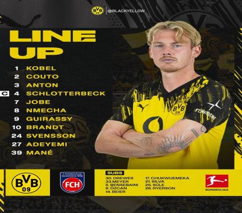 多特vs海登海姆:吉拉西、布兰特、阿德耶米首发