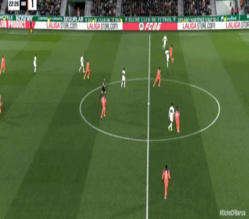 第40分钟,德容冷静回做,费兰-托雷斯推射破门,巴萨2-1!