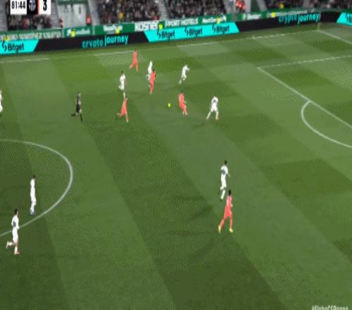 半场补时第2分钟,费兰-托雷斯单刀过门将打门,皮球又被对方解围。
