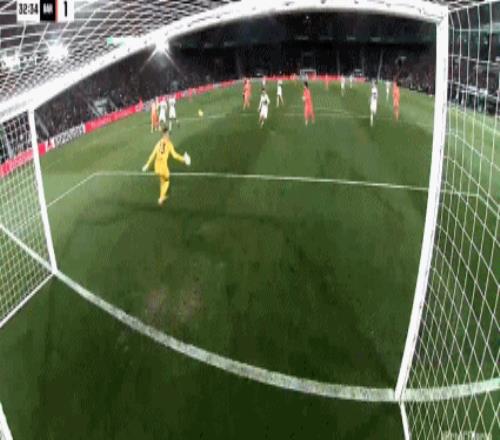 第34分钟,费兰-托雷斯连续攻门,1秒内2次射门均击中门框。