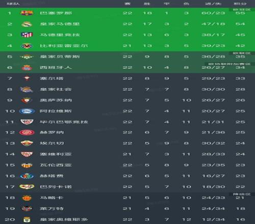 随着皇马21,毕包11皇家社会,西甲最新积分榜如下!巴萨领跑