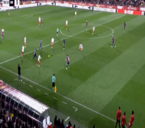 第23分钟,赫罗纳打出精彩配合,瓦纳特打门被没收