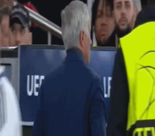 第85分钟,威尼修斯回追,抢断时放倒里奥斯,裁判并没有向熊皇出示第二张黄牌,穆里尼奥极其不满,冲入场内抗议,连吃两张黄牌被请上看台。