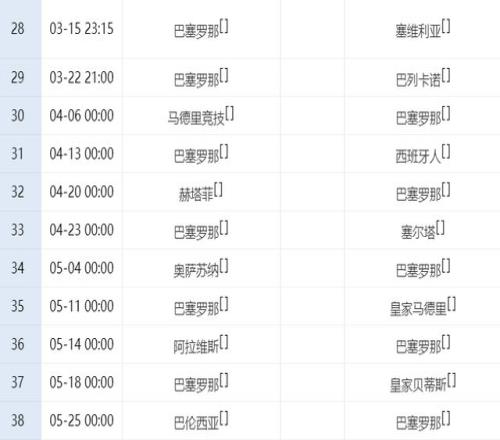 根据赛程安排,第30轮巴萨将做客对阵马竞,之前的国王杯,巴萨在客场净吞4弹惨败给对手,这场比赛对巴萨绝对是巨大的考验,一旦他们再次输给对手,联赛的形势会大受影响。之后第35轮,巴萨将在主场迎战皇马,这更是一场对冠军归属有决定性影响的比赛,双方首循环对决,巴萨在客场输给皇马,回到自己的主场,巴萨要是不能拿下对手,本赛季交战成绩就不占优势,假如最后2队同分,巴萨将无缘冠军。当然了,巴萨现在有4分优势在手,在其他比赛都顺利拿下的情况下,对阵马竞和皇马这2场决战,他们只要赢下1场,巴萨都将顺利夺冠。总而言之,现在巴萨完全占据了主动权,他们牢牢掌控自己的命运,只要关键时刻不掉链子,巴萨就大概率能拿到西甲冠军!