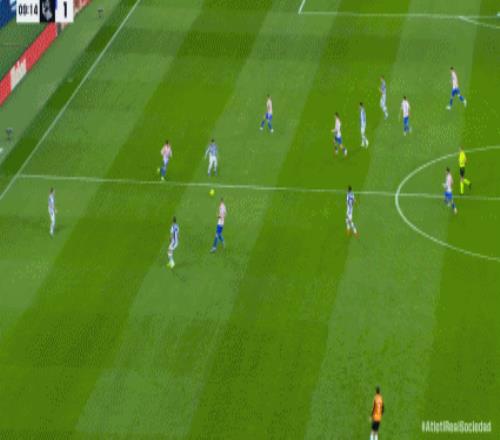 第9分钟,苏契奇助攻,索莱尔停球推射破门,皇家社会1-1闪电扳平!