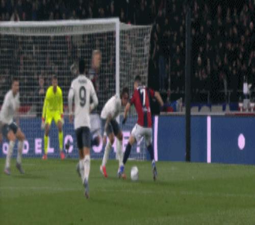 第33分钟,博洛尼亚左侧角球,卡斯特罗抢点破门,博洛尼亚1-0拉齐奥
