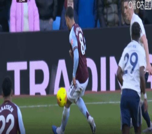 第45+2分钟,沃特金斯轰出世界波,维拉1-0诺丁汉森林
