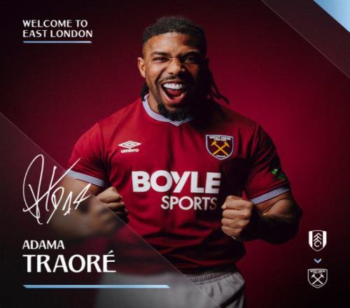 西汉姆联官方宣布,从富勒姆签下30岁西班牙右边锋阿达马·特劳雷,球员获穿17号球衣。据悉转会费为200万英镑,特劳雷和农场主的合约原本将在今夏到期。 特劳雷此番转会,得以与前狼队主帅努诺再续前缘,后者期待特劳雷“在进攻区域为我们提供不同选项,注入能量、奉献与决心”。