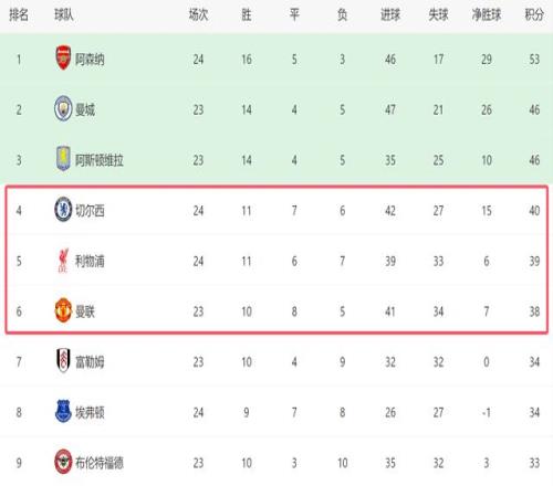 本场利物浦顺利拿到3分,再加上切尔西也逆转西汉姆,英超积分榜的形势也发生了变化。2大豪门已经反超了曼联,其中切尔西杀进前四,利物浦位居第五。接下来,曼联将在主场迎战富勒姆,如果能击败对手,他们就将重新回到前四的位置。