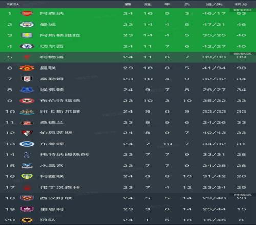北京时间2月1日,英超第24轮率先结束了5场比赛,我们看看最新积分榜变动,主要的信息如下:利兹联0-4惨败阿森纳,切尔西3-2战胜西汉姆联、利物浦4-1战胜纽卡斯尔联、布莱顿1-1埃弗顿、狼队0-2伯恩茅斯!