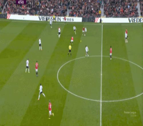 这种一锤子买卖,除非真的一次就打成,否则很难震慑得住需要扳平比分的对手,于是富勒姆卷土重来,在30分钟区间连续从左右两路和中路,直接形成了对曼联的压力: