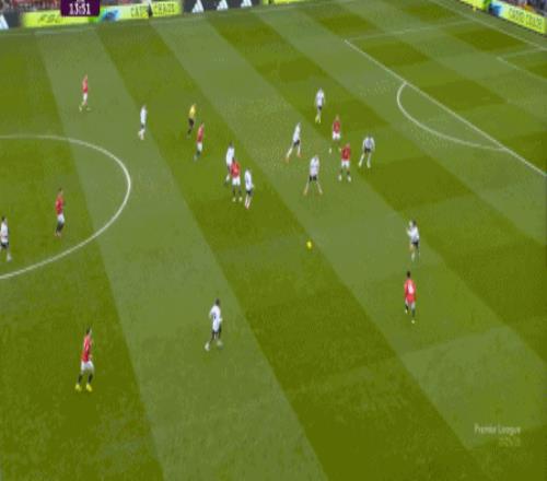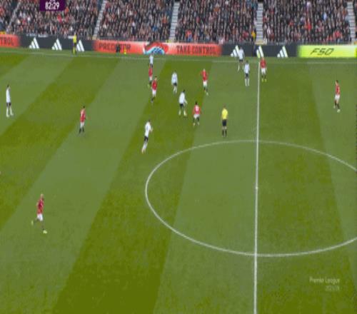 这显然是找对进攻方向的合理收获,但是,曼联的防守压力并未因此减轻,富勒姆在这一侧承压,但也能在这一侧直接向前,不管是在丢球前: