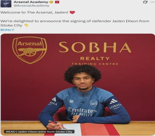 官方:阿森纳宣布从斯托克城签下了贾登-迪克逊。