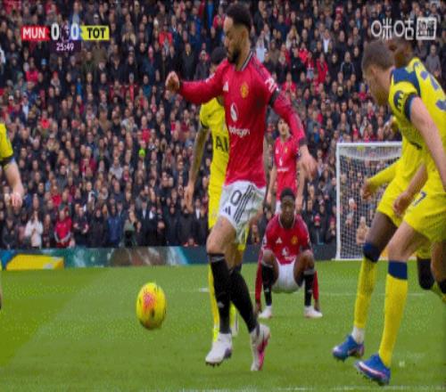 第37分钟,曼联角球配合,姆伯莫推杆破门,曼联1-0领先热刺!