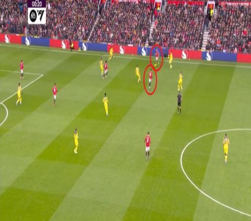这段时间的曼联确实出现了一些危险的苗头,因为卡塞米罗不仅在高位,在低位也出现了覆盖的问题: