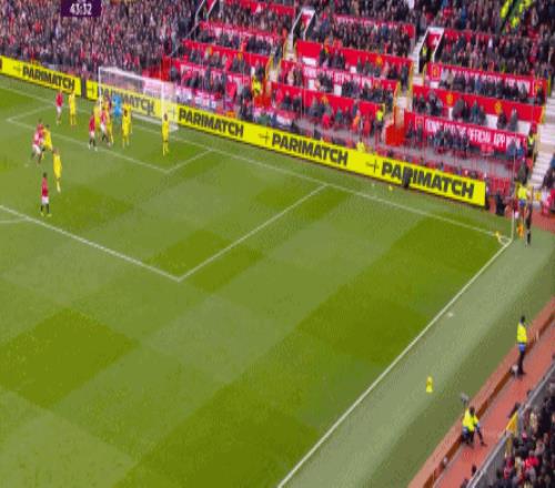 于是在30分钟后,曼联就形成了多打一人,这在主场是清晰的优势,所以在第38分钟,曼联通过中路配合和争抢制造的角球,完成了比分的领先: