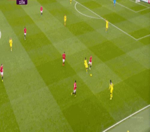 结果范德文既没有顶住阿玛德-迪亚洛的顺利做球,转身回来也不够快,从而导致了这片空当的出现: