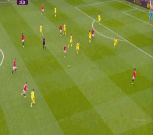 但要注意的是,曼联这次能够来到前场,制造出空当,险些制造出禁区线上的犯规,也是阿玛德-迪亚洛斜向进入中路的结果。